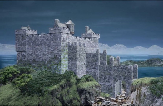 Above: A rendering of what Dunscaith Castle might have been, done by Smart History, a spin out company from the University of St Andrews and what it looks like today.