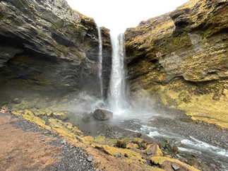 We hit all the waterfalls that we had already done, plus headed to the other side of the Black Sand Beach that we thought we were going to on the first day where you can see amazing examples of basalt columns at huge giant Atlantic waves. On our way back we ended up going to Kvernufoss, which we discovered while scouring through google maps looking for new sights to see. Kverna waterfall spills out over steep moss covered cliffs into a beautiful valley. We were able to hike behind the waterfall and stand behind it and it was truly an awe inspiring experience.